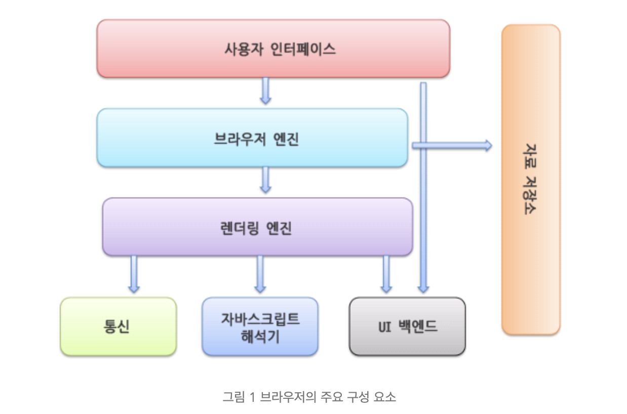 - [브라우저 엔진] 유저 인터페이스와 렌더링 엔진을 연결하는 브라우저 엔진(가교 역할)